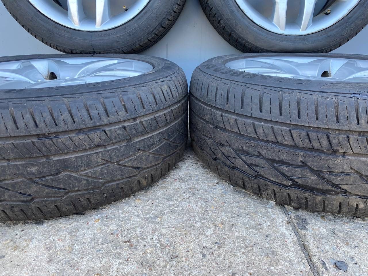 Хорошее состояние, разноширокие 8/9J. Без сварок, трещин, резина по парам с остатком по 5мм.