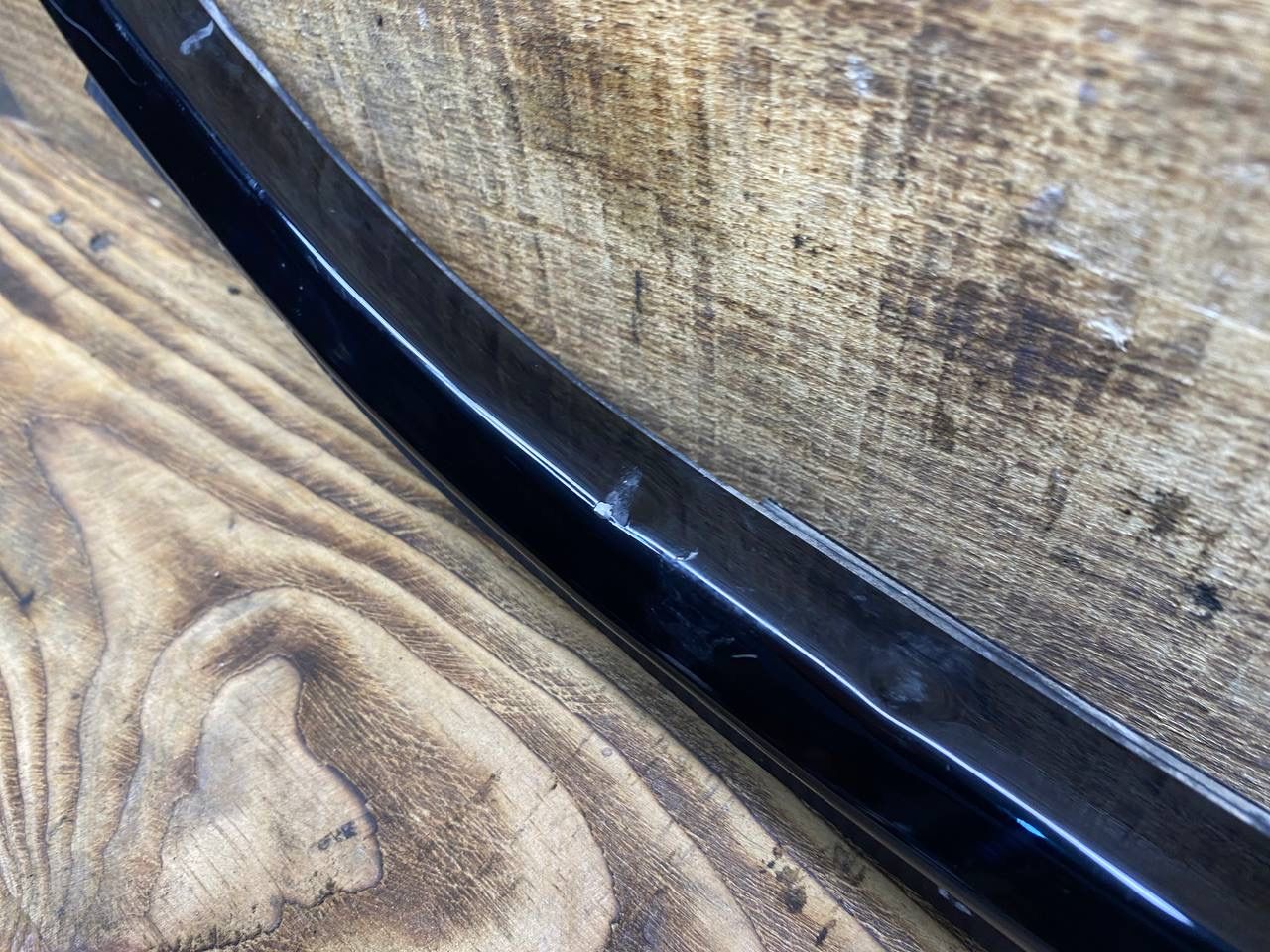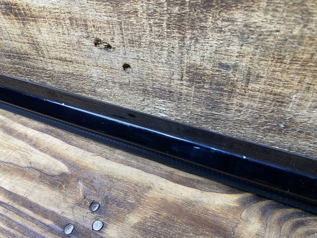 Царапины мелкие и вмятины. Молдинг шахты передней двери слева.