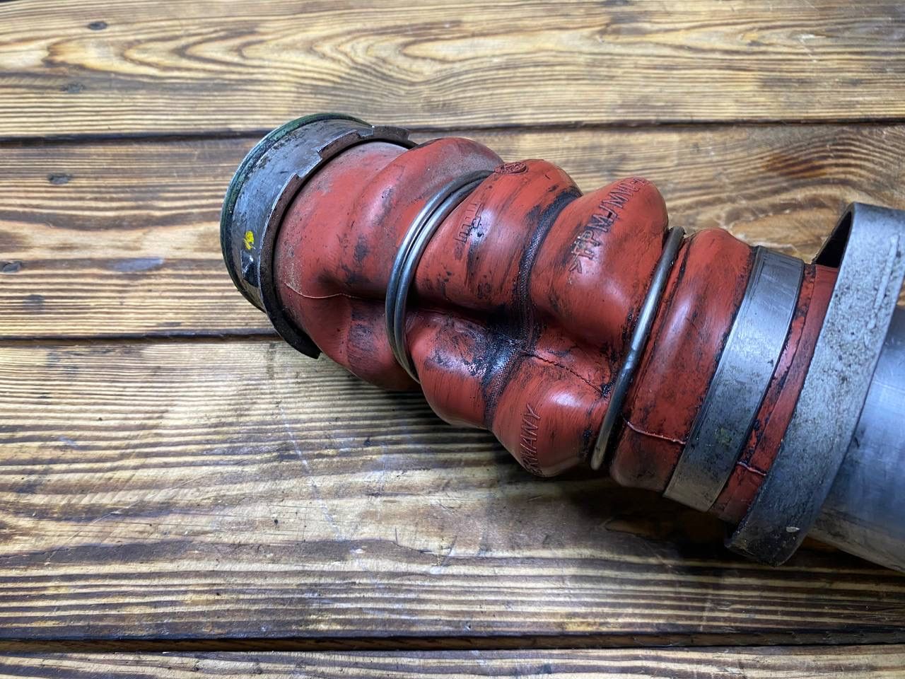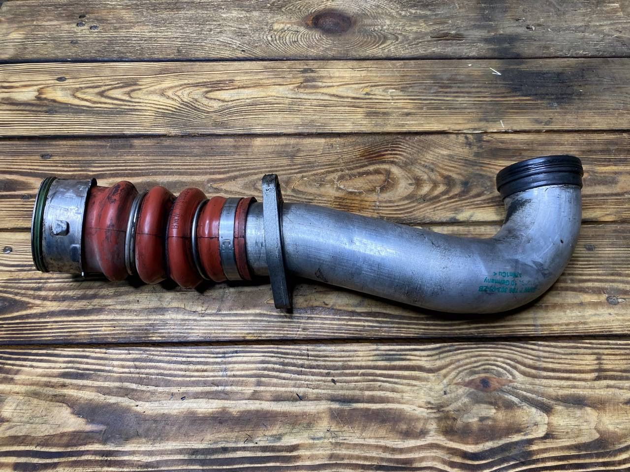 Трубопровод наддувочного воздуха от турбины на интеркулер. Отличное визуальное состояние, запчасть снята с австралийского автомобиля с пробегом 145 тысяч км.